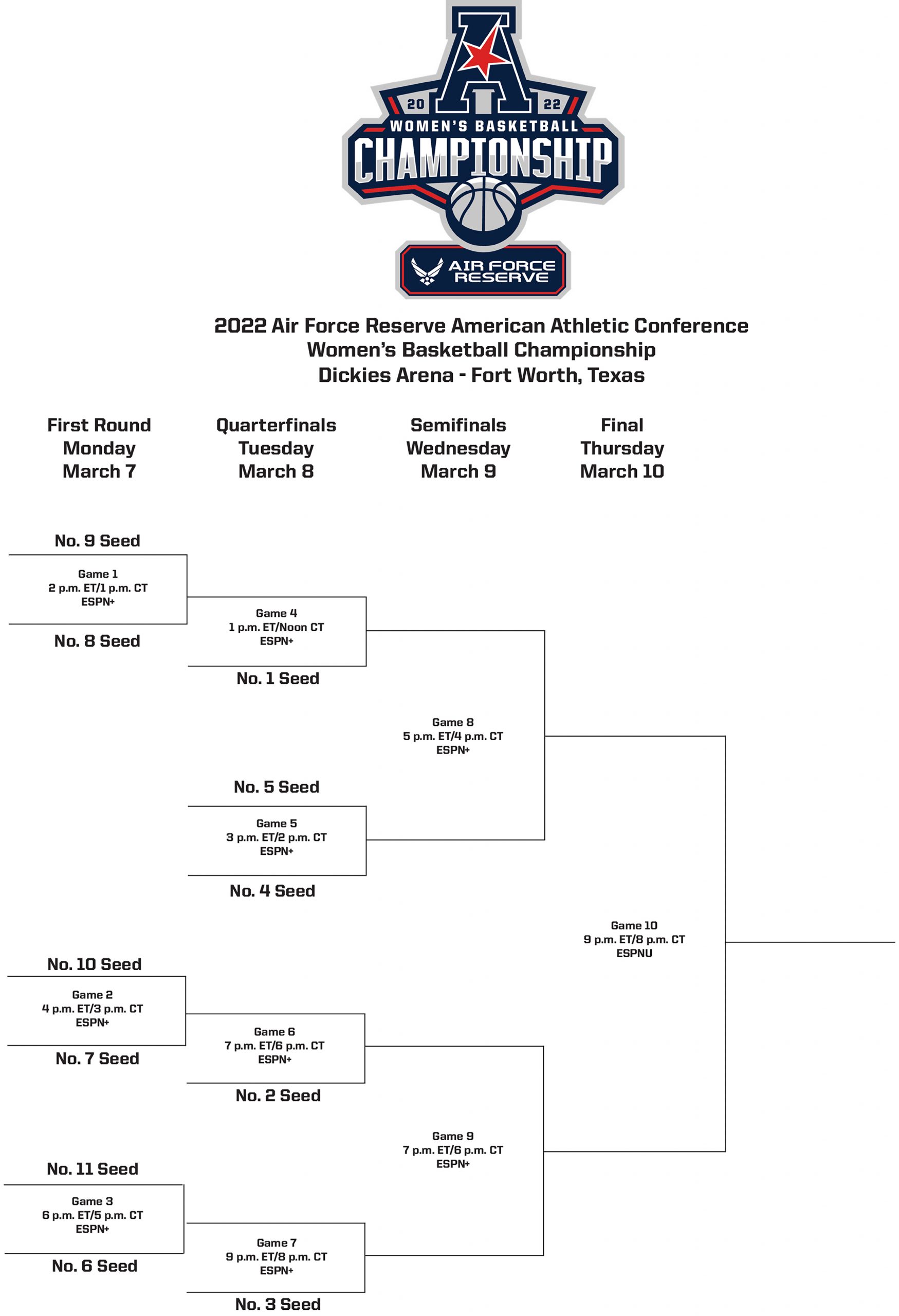 For the second straight year, The American’s Men’s and Women’s Basketball Championships will be contested at Dickies Arena in Fort Worth, Texas. The Women’s Championship will run March 7-10, while the Men’s Championship is set to take place March 10-13.