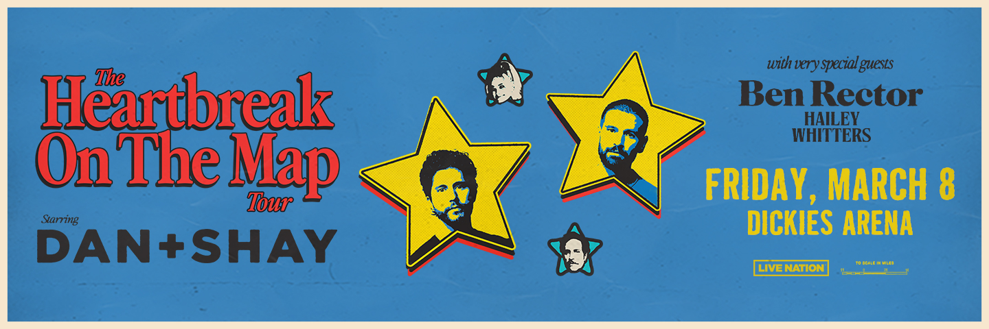 3x GRAMMY Award-winning duo Dan + Shay plan their trek across the map with the announcement of their 2024 The Heartbreak On The Map Tour. Produced by Live Nation, the 19-city tour will make a stop to Dickies Arena in Fort Worth on Friday, March 8. The tour aptly receives its title from “Heartbreak On The Map,” the third song, and early fan-favorite contender, on the duo’s highly anticipated, fifth studio album, Bigger Houses due tomorrow, September 15 via Warner Music Nashville.