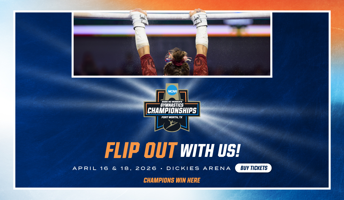 The NCAA Women’s Gymnastics Championship returns to Dickies Arena Thursday, April 16, and Saturday, April 18, 2026.