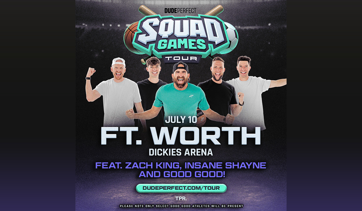Dude Perfect: Squad Games Tour 2026 Doors Open: 6:00 p.m.Start Time: 7:00 p.m. July 10, 2026 DETAILS GET TICKETS