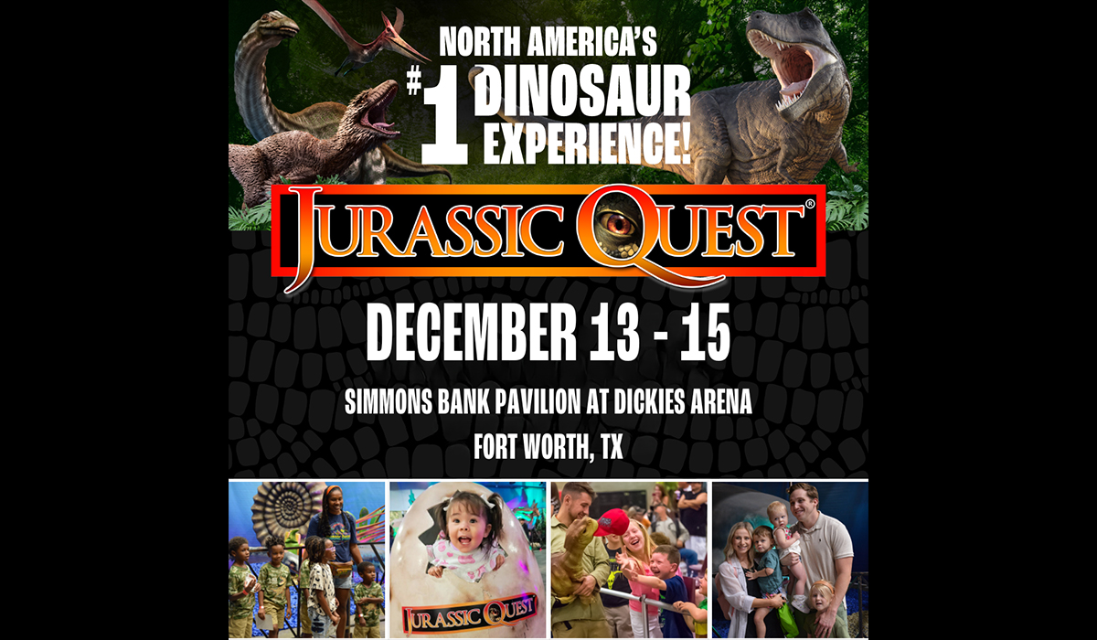 Jurassic Quest is coming to Simmons Bank Pavilion at Dickies Arena Friday, December 13th through Sunday, December 15th.