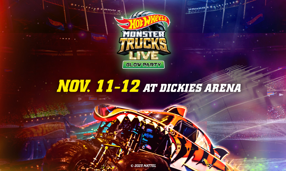 HOT WHEELS MONSTER TRUCKS LIVE GLOW PARTY IS COMING BACK TO DICKIES ARENA ON NOVEMBER 11th & 12th!