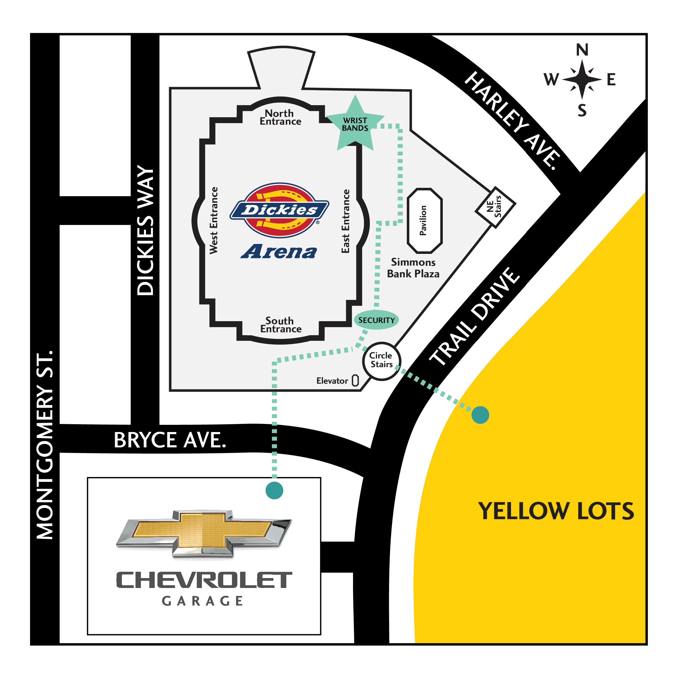 2. Park in the Chevrolet Garage or Yellow Lots.
