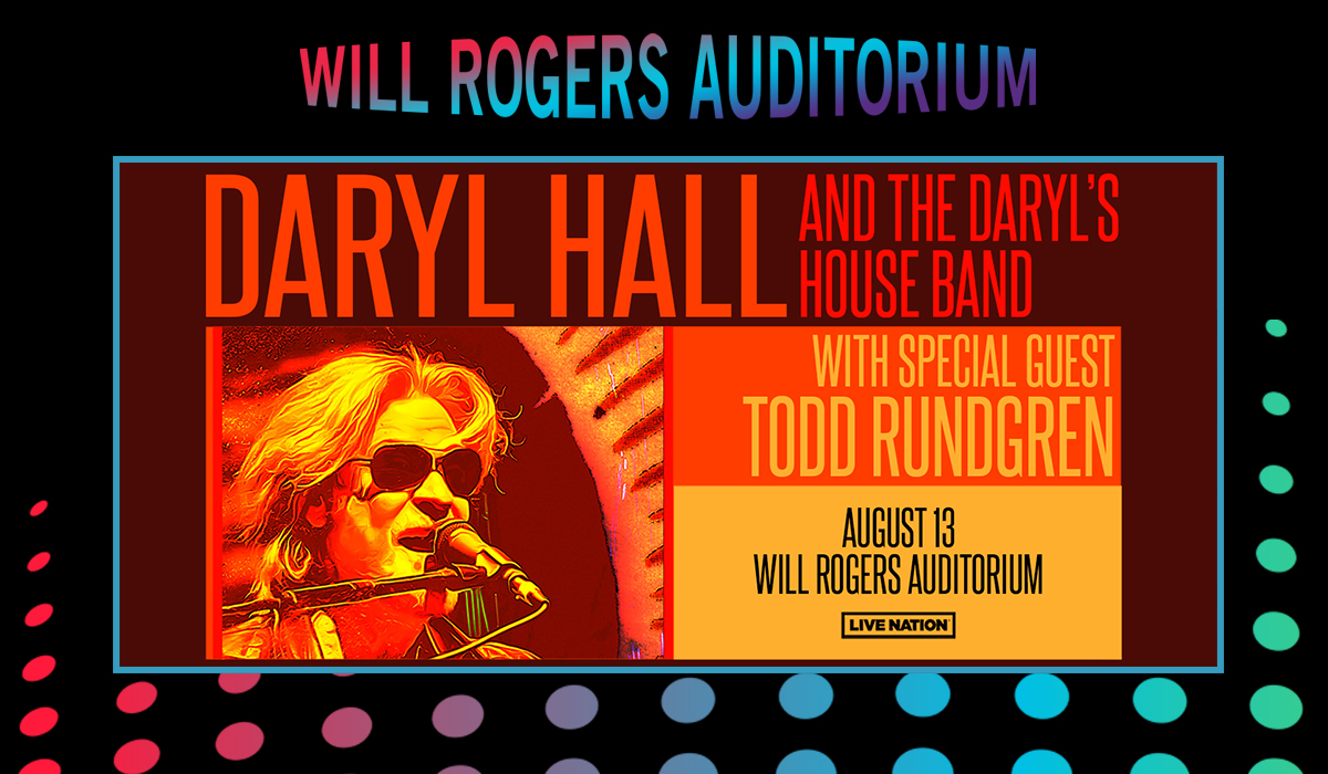 DARYL HALL & THE DARYL’S HOUSE BAND with special guest Todd Rundgren to perform at WILL ROGERS AUDITORIUM on Sunday, August 13, 2023.