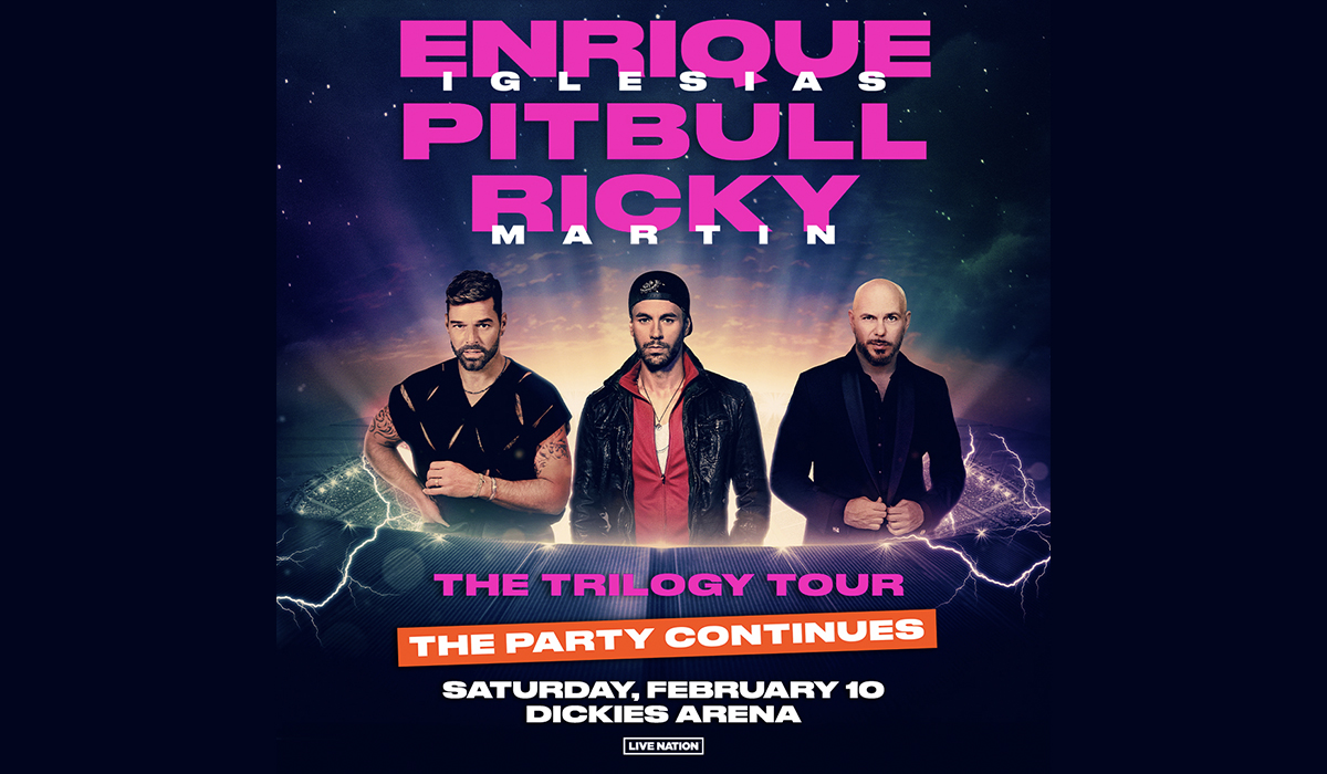 As they continue to sell out shows across North America, the three multigenerational global powerhouses Enrique Iglesias, Ricky Martin, and Pitbull are extending their one-of-a-kind arena party – The Trilogy Tour – into 2024 with 18 new shows across North America including a stop in Fort Worth, TX February 10 at Dickies Arena. Fans can expect an unforgettable night of music from three unique headlining sets on the Live Nation produced tour as the megastars deliver an electrifying mix of their biggest career-spanning hits with influences of reggaeton, salsa pop, dance, and electronic music, backed by world-class production and state-of-the-art visuals.