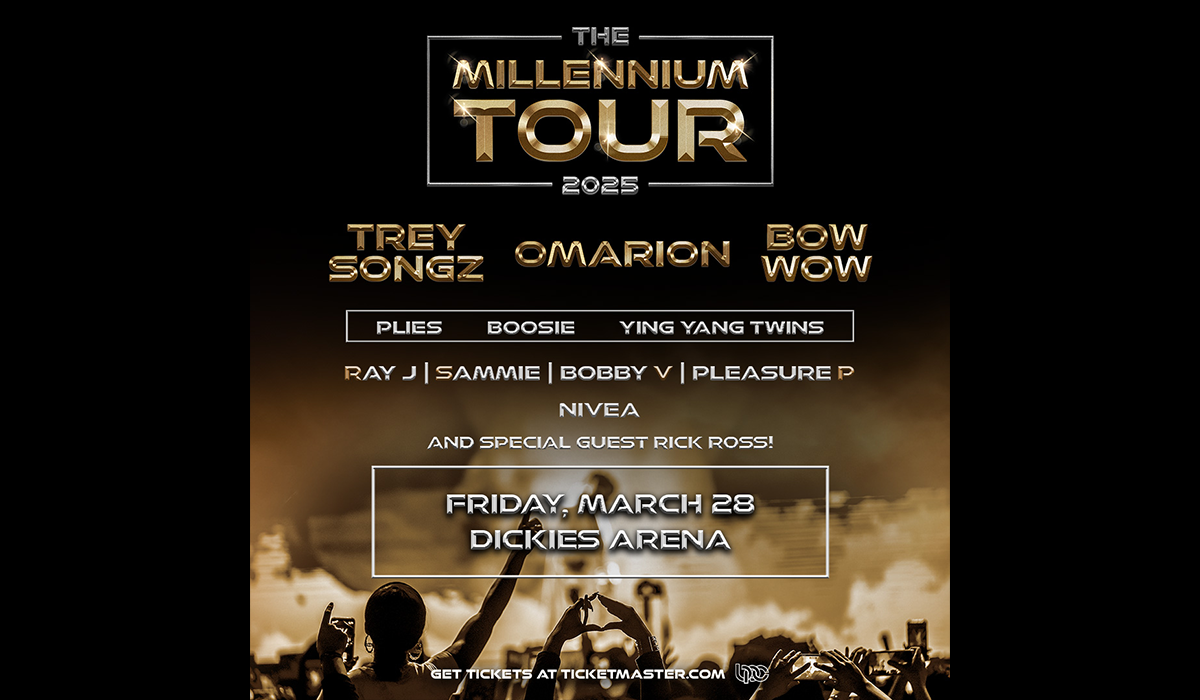 The Millennium Tour is making a stop at Dickies Arena on Friday, March 28th! This tour will feature Trey Songz, Omarion, Bow Wow, Plies, Boosie, Ying Yang Twins, Ray J, Sammie, Bobby V, Pleasure P, Nivea, and special guest Rick Ross.