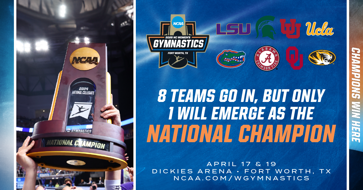 The eight NCAA women’s gymnastics teams punched their tickets to compete in the 2025 NCAA® National Collegiate Women’s Gymnastics Championship at Dickies Arena April 17 & 19! Competition schedule below: