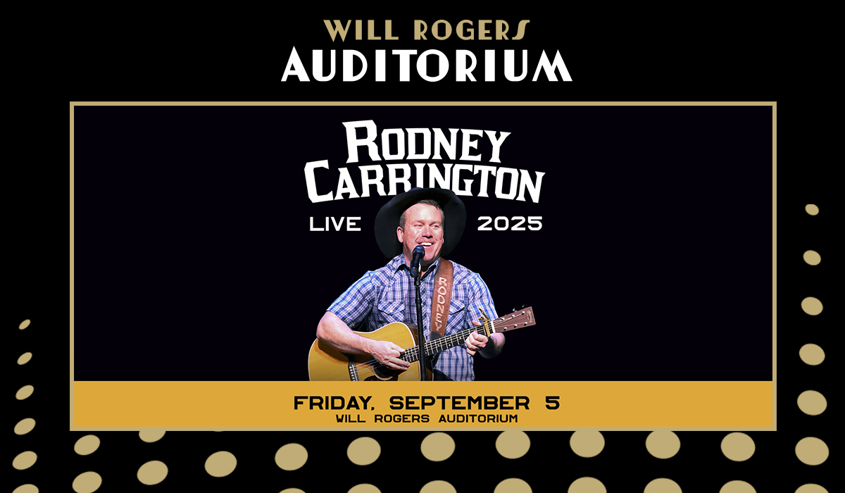 Multi-talented comedian, actor, singer and writer Rodney Carrington is bringing his hilarious, irreverent Rodney Carrington Live 2025 tour to Will Rogers Auditorium Friday, September 5, 2025. He last played Will Rogers in 2023.