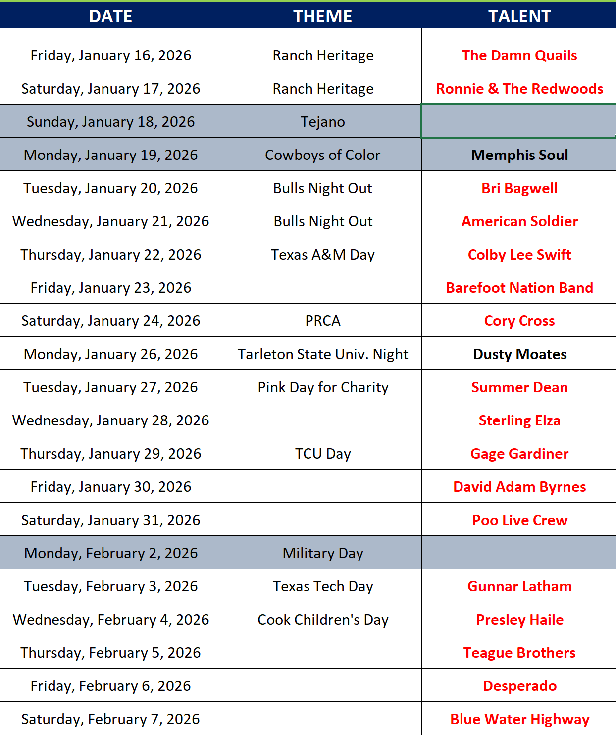 ADDITIONAL INFORMATION: Besides the PRORODEO Tournament and Rookie Rally, fans will have a variety of additional choices for their rodeo experience at the 2026 Stock Show.