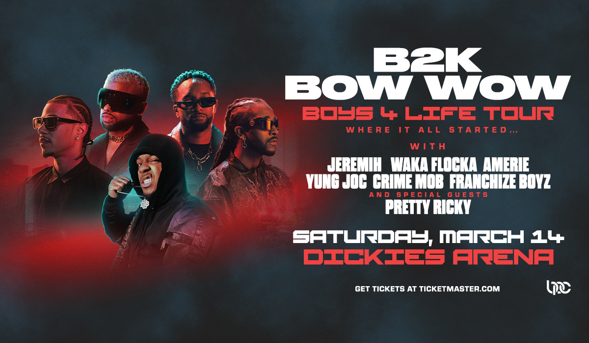 The moment fans have been eagerly anticipating has finally arrived. After two decades, one of the most iconic R&B groups, B2K, who are celebrating their 25th anniversary, officially reunite for the “Boys 4 Life” Tour. The tour also marks more than 20 years since B2K and Bow Wow, who is co-headling, first shared the stage during 2002’s Scream Tour II, a pivotal cultural milestone that helped define a generation. Powered by Black Promoters Collective (BPC), the 28-city tour will make a stop to Dickies Arena on Saturday, March 14.
