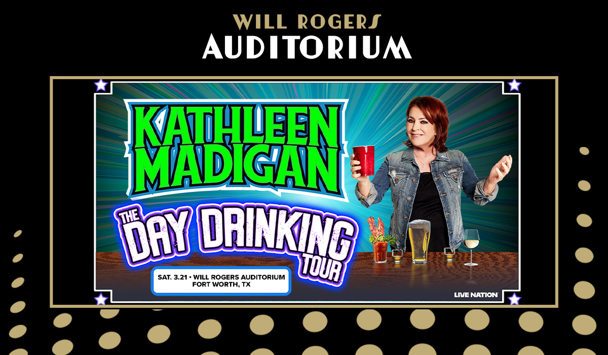 Comedian Kathleen Madigan announces her 2026 dates for her THE DAY DRINKING TOUR and will bring the tour to Will Rogers Auditorium on Saturday, March 21. As a premiere stand-up comedian for the last three decades, Madigan sells out marquee theaters across the country and is one of the few female comedians to tour over 250 days a year.